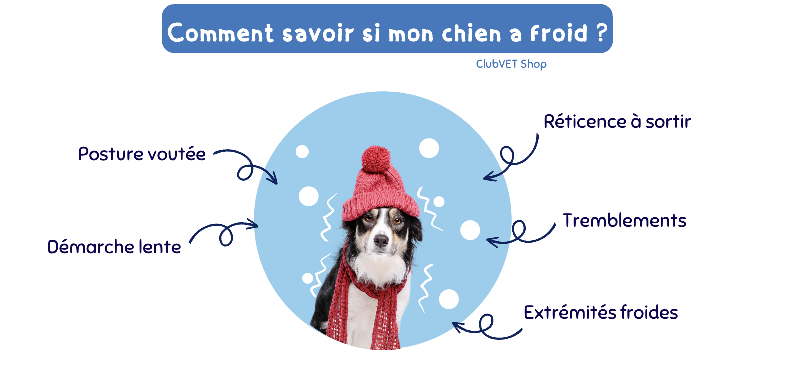 Les signes de froid incluent des tremblements, une réticence à sortir, une démarche ralentie ou une posture recroquevillée. Si ces symptômes apparaissent, il est temps de réchauffer votre chien rapidement.